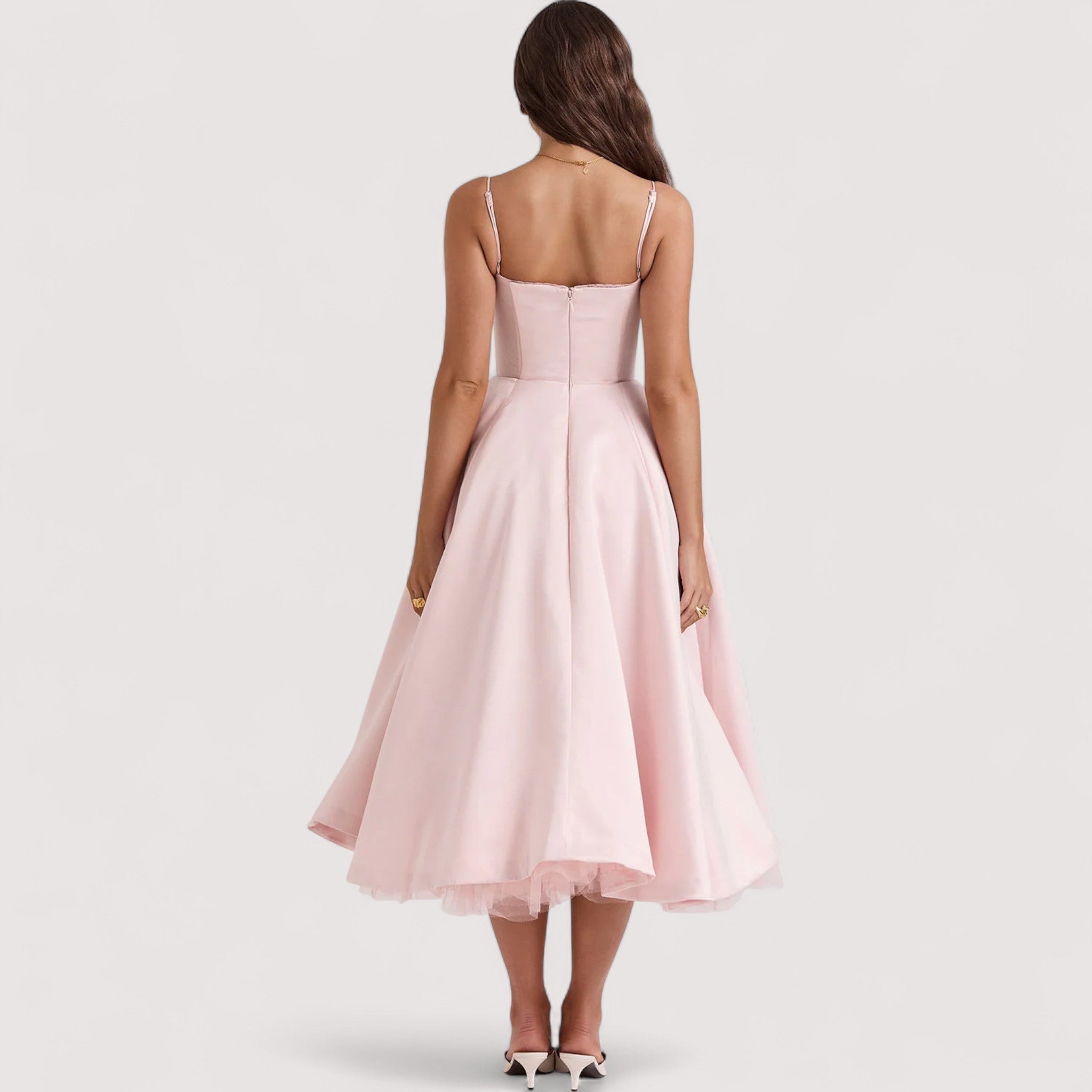 Entdecke mühelose Eleganz mit einem Kleid, das zeitlosen Charme und anmutige Bewegung vereint. Perfekt für Hochzeiten, Gartenpartys oder jede andere elegante Sommerveranstaltung.